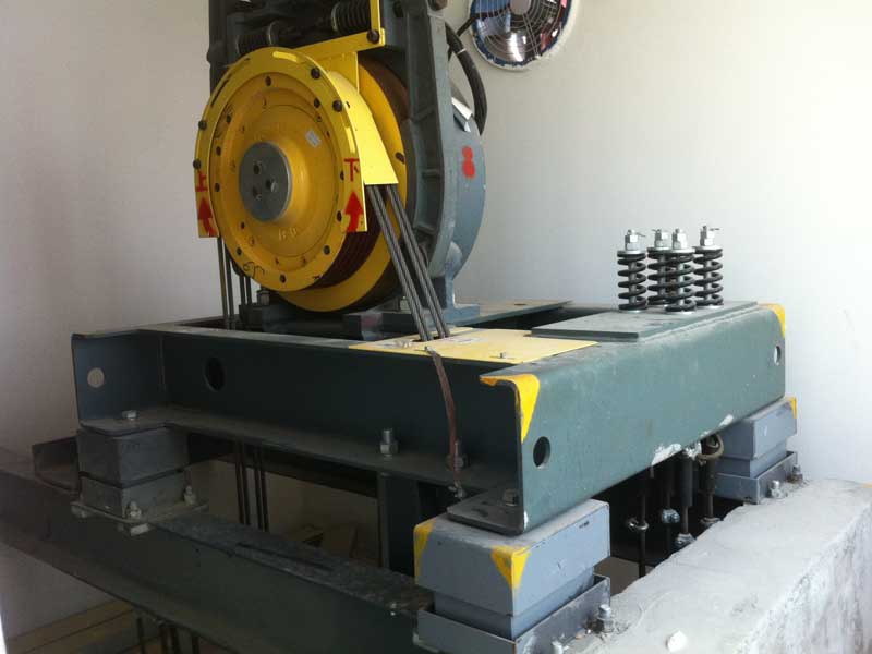 在电梯曳引机底座加装分体式金属减振平台,将振动声源与地面、四周的墙体做隔离;电梯的主要固体刚性连接替换成软性弹性连接,削弱刚性连接的传声;根据具体的噪声情况对电梯机房、室内等进行低频噪音治理。