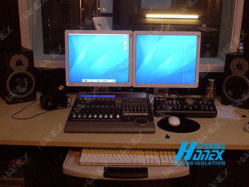 1.控制室与录音室分隔降噪,中间分隔墙体隔声同时安装密封可视玻璃